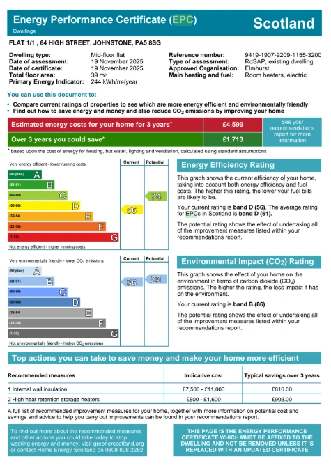 EPC documentation has been provided by the seller as verbal and written confirmation of availability and documentation will be provided at Completion once the property has been secured.