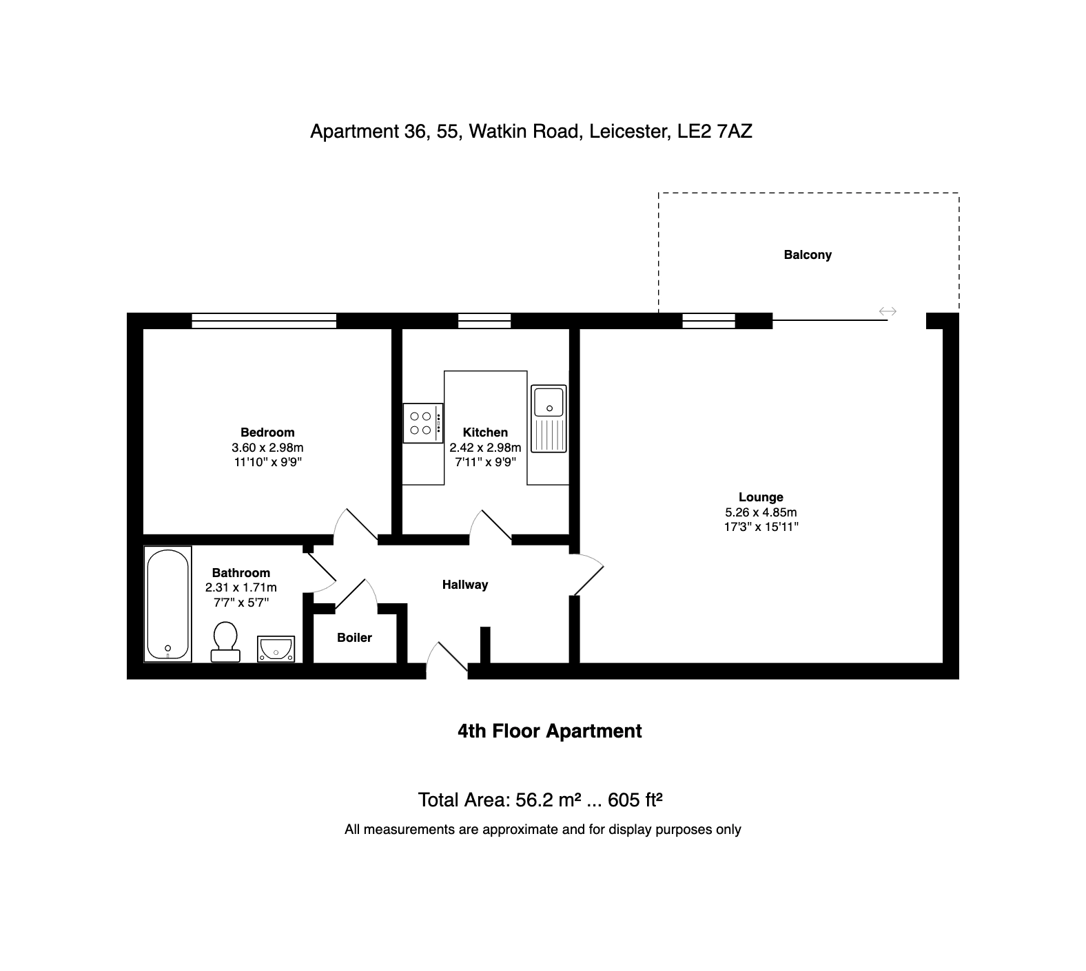 The well-kept home features a bedroom, lounge, kitchen, bathroom and balcony.