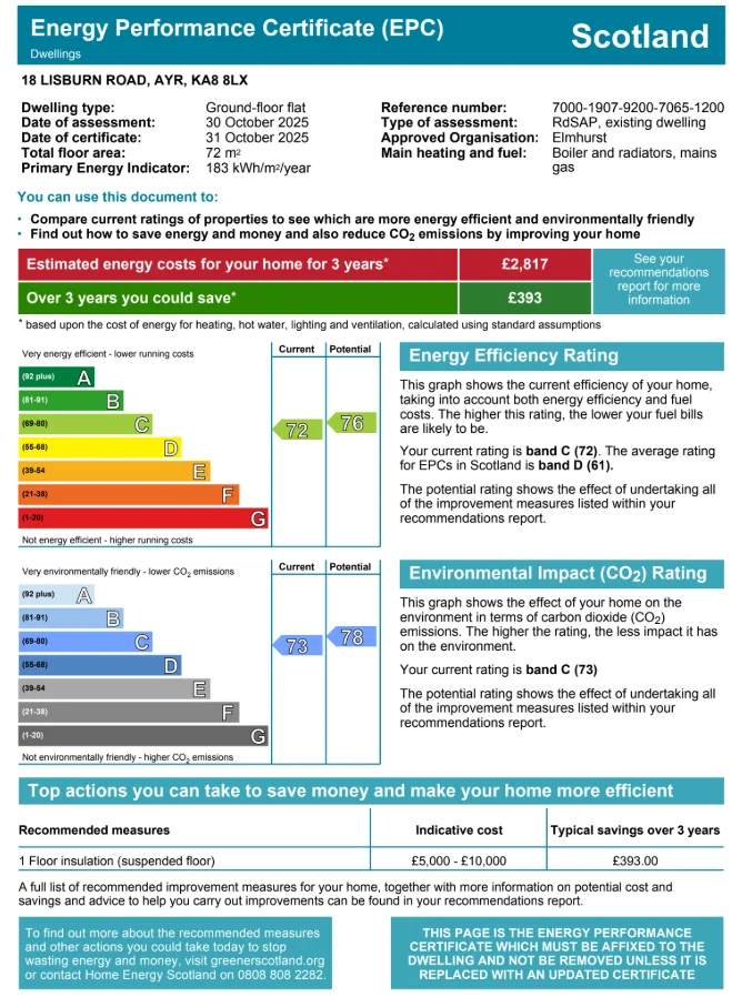 EPC documentation has been provided by the seller as verbal and written confirmation of availability and documentation will be provided at Completion once the property has been secured.